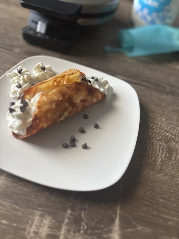 And if you’re wondering how you’ll make your cannoli shell on your waffle iron without waffle iron marks, I explain below how to make your easy flat irons with your waffl-y iron! 🧇
