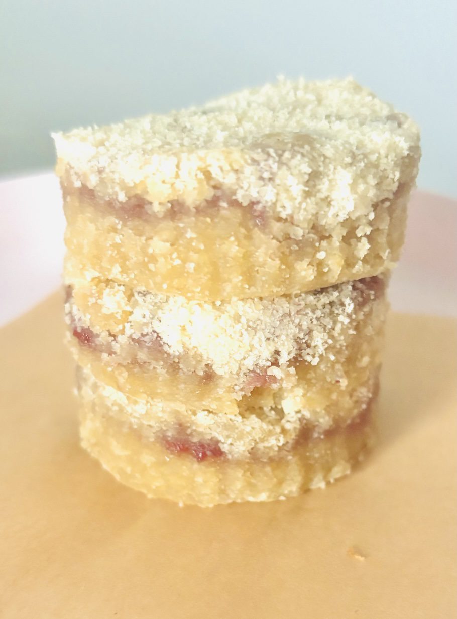 - Optional: slice shortbread cookie in half. and smear thin layer of raspberry jam to the middle layer.