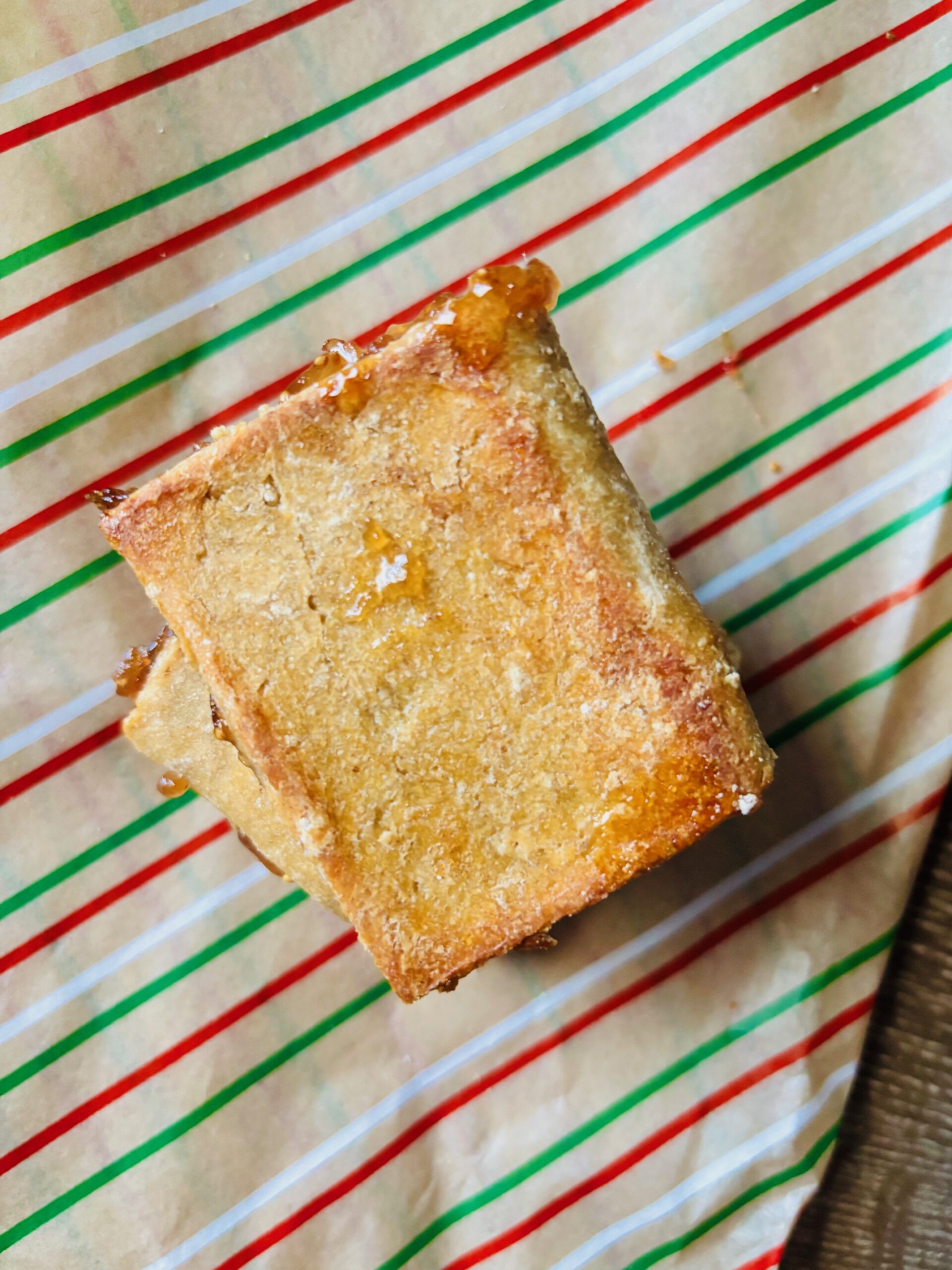 My tip is to cut before baking, so you lose no crumbs and get an even bake.