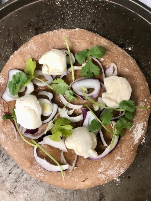 …In your wonder, you can take a cup of flour and make a mound. Then, make a small well in the middle (like you would if you were making pasta) and add a tablespoon of olive oil in the well and start combining… and see what happens.