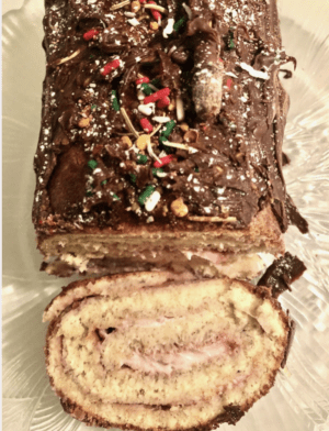 Christmas cake is a buche de noel sponge cake that gets better when you pair with happy places.
