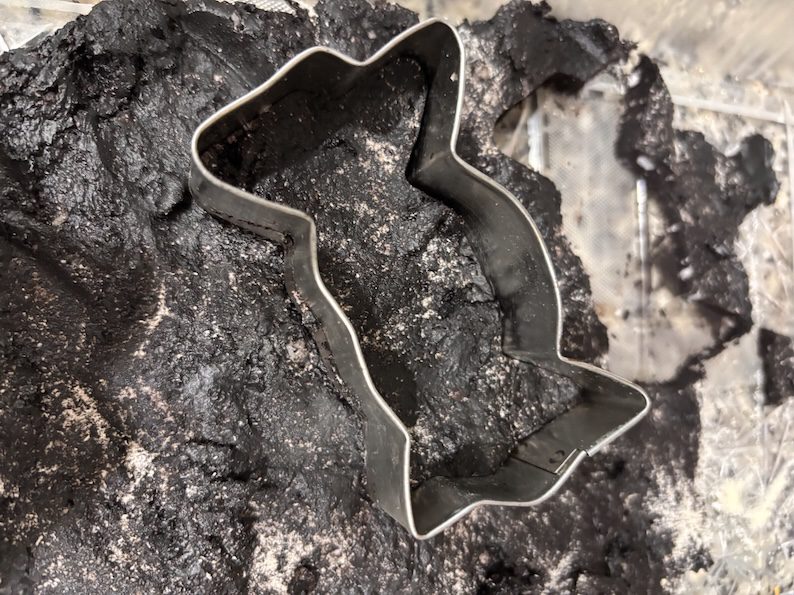 Add your decorations while the dough is still sticky. You can zhugh with powdered gold ginger dust or more (dark) cocoa decadence.