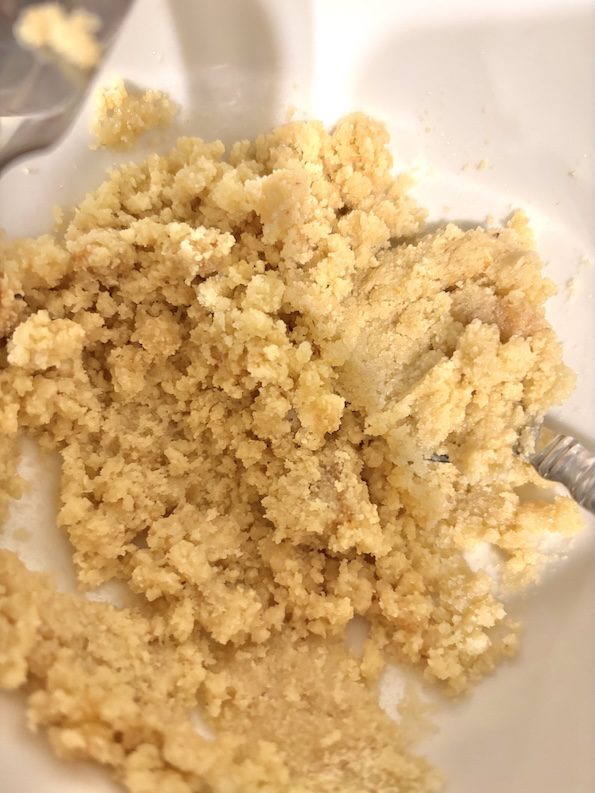 The filling is an all almond cookie/cake (or frosted donut) that again is no baking or cooking. It’s one-bowl and hand mixing easy. No fuss, no muss.