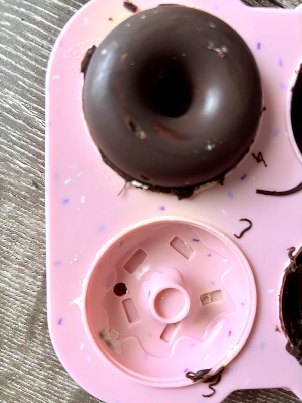 And you can bring out the ligher tastes with a contrasting dark chocolate shell like a healthy 70% or more darker chocolate that’s reminiscent of a frosted donut.