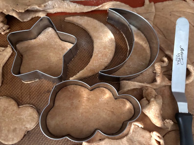 Imprint cut but easier to remove shapes when the pastry dough is cold. ☁ ⭐️🌙