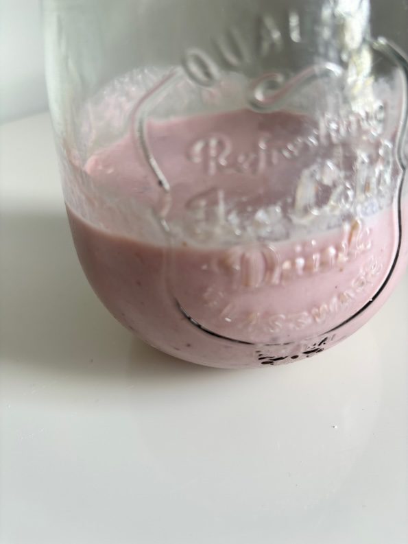 Use a freezer-safe cup or tumbler, and freeze overnight so that your fruit shake stays cold. Pull out in the morning and put by your things you’ll be packing for the day (so you don’t forget!).