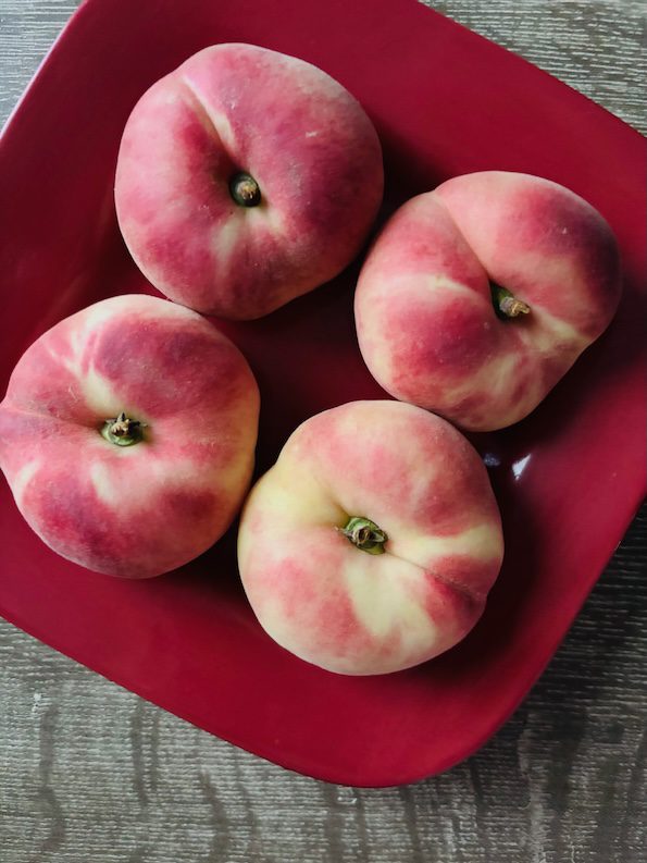Overhead, they look the same as regular peaches. You can eat these as plain whole fruit too!