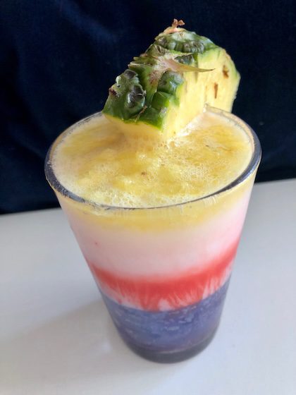 In making my dream version of a perfect tropical fruit smoothie drink, I think I’d mix strawberry, basil, and coconut froth. To each her own.