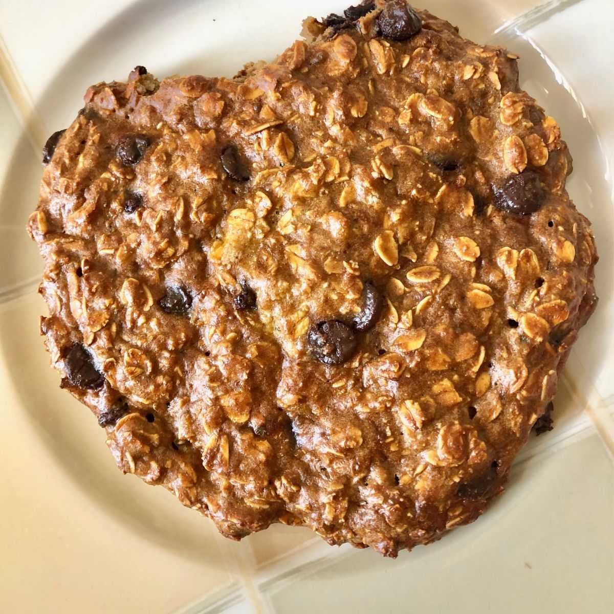 So it’s gimme that I was inspired to make a decadent giant chocolate chip oatmeal cookie big enough for a breakfast snack with healthy sensibilities… and this one I baked is a low-sugar version in my healthy evolve.