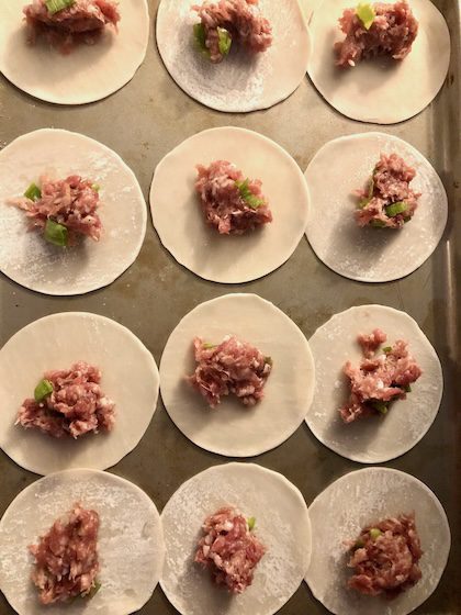 - Add pork, scallions, and salt mixture to wontons. Do not over fill.