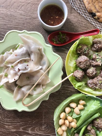 And these worked out beautifully. Garnished with the dainty cut scallions I’m happiest with. And a spiced sauce that’s light and flavorful.